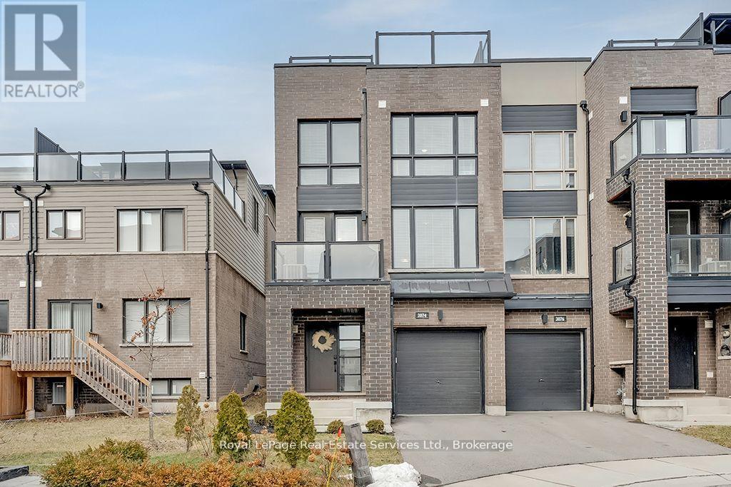 Stunning 3 Storey End Unit Townhome in Desirable Joshua Meadows. Impeccably maintained 2 Bedroom 2.5 Bath home boasting over 1500 Sq Feet of living space with hardwood flooring + large windows providing ample natural light. Front porch leads to a large foyer with ample storage space and direct access to garage. Bright open concept main living space with 9 ft ceilings. Modern kitchen featuring dark cabinetry, SS appliances, tile backsplash, granite counters, centre island with breakfast bar + undermount sink. Spacious great room with separate dining room with a walk out to balcony + 2 pc bath. The 3rd level features primary bedroom with his/her closets + 4 pc ensuite, 2nd Bedroom with barn door entry, 4 Pc Main bath + Convenient bedroom level laundry. Walk up to the roof top deck with beautiful views. Amazing location close to all Amenities, Schools, Shops, Trails, Transit + minutes to major HWYs. Perfect for commuters + executives - this townhome is sure to impress! (id:52560)