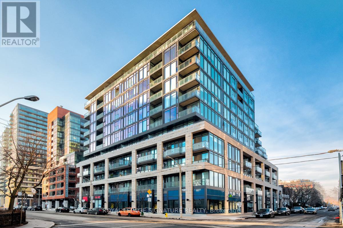 Welcome to the iconic Bohemian Embassy Lofts, where contemporary design meets urban lifestyle in the vibrant heart of Queen West. This spacious approx. 770sqft. 1Bedroom + Parking, 2-Storey loft offers an airy open-concept layout with sleek dark engineered hardwood floors throughout. The main floor features a modern kitchen and living/dining area with a walk-out to a generous private terrace is perfect for entertaining or unwinding. Upstairs, the sunlit primary suite boasts a walk-in closet, 4-piece ensuite, and an opening skylight with striking city views. Just steps to Queen Wests best, with King West, the Waterfront, Liberty Village, Ossington, and Roncesvalles all within walking distance.